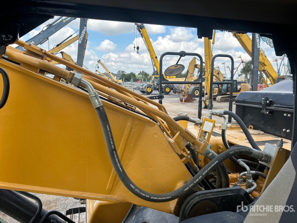 Redesigned “Luxury” Cab: The 2023 model features a pressurized cab with a significantly larger glass area for improved 360-degree visibility. It includes an industry-standard air-ride heated seat and a high-output HVAC system designed to handle extreme ambient temperatures.