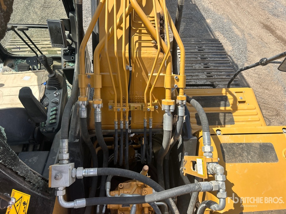Extended “LC” Undercarriage: The “LC” (Long Crawler) designation provides an extended track-to-surface length of 12′ 7″. This longer footprint, combined with an additional counterweight as standard, provides the stability needed for heavy lifting and running high-flow attachments like forestry mulchers or large breakers.